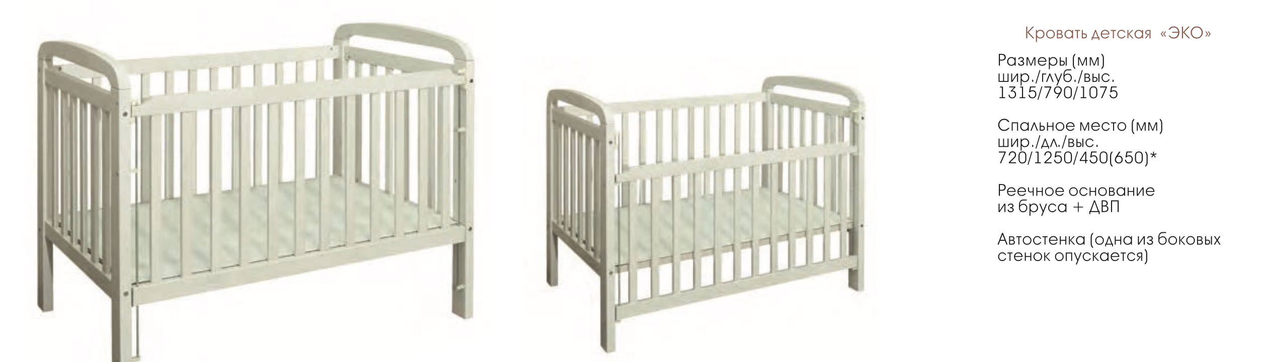 Детская Кровать Эко-Массив Малыш/Ш-1315 х Г-790 х В-1075 мм