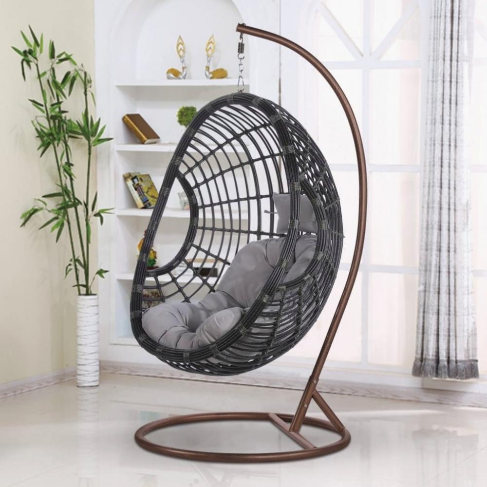 Размер корзины: 124х98х72 см Стойка: H2,0xD1,0 м, Каркас сталь. Материал плетения темно-серого цвета. Подушка серая. Ткань с водоотталкивающей пропиткой. Допустимая нагрузка: 120 кг.
