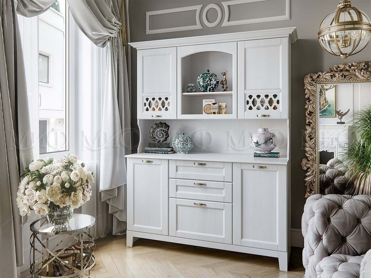 Буфет Милан с Карнизом МДФ/Белый Текстурный(Ш-1640 x Г-600 х В-2017)